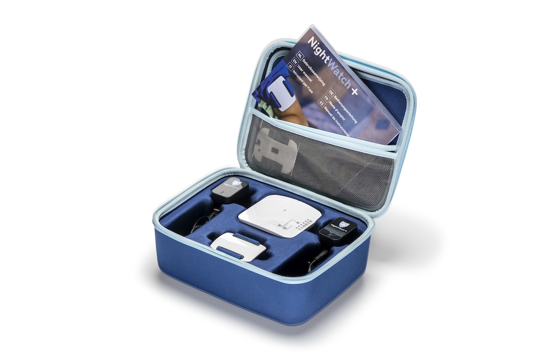 Complete NightWatch+ device, delivered in a protective travel case