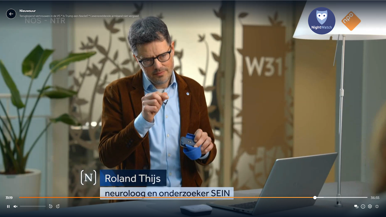 In de uitzending van Nieuwsuur op vrijdag 23 januari stond NightWatch centraal: een erkend medisch hulpmiddel dat nachtelijke epileptische aanvallen detecteert. Dit hulpmiddel wordt momenteel in Nederland niet vergoed, wat tot verontwaardiging leidt. In het item kwamen onder andere neuroloog Dr. Roland Thijs en Joyce, moeder van een dochter met epilepsie, aan het woord die het belang benadrukken.